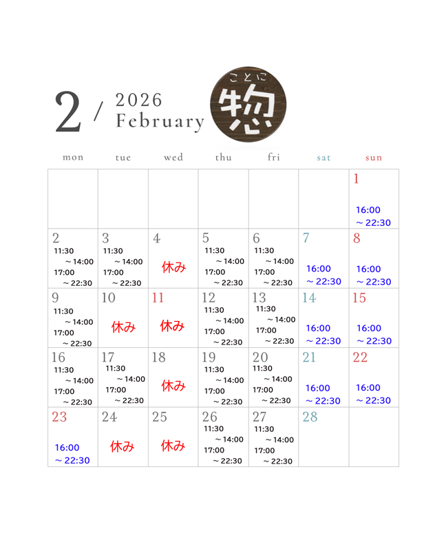 2月は通常通りの営業を予定しています。 お席の