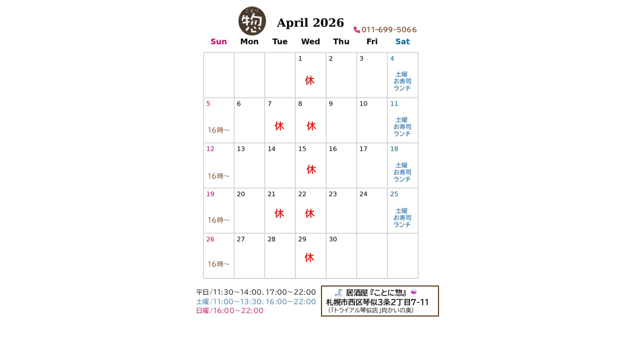 3月の営業日のお知らせです。 今月から、土曜日のラ